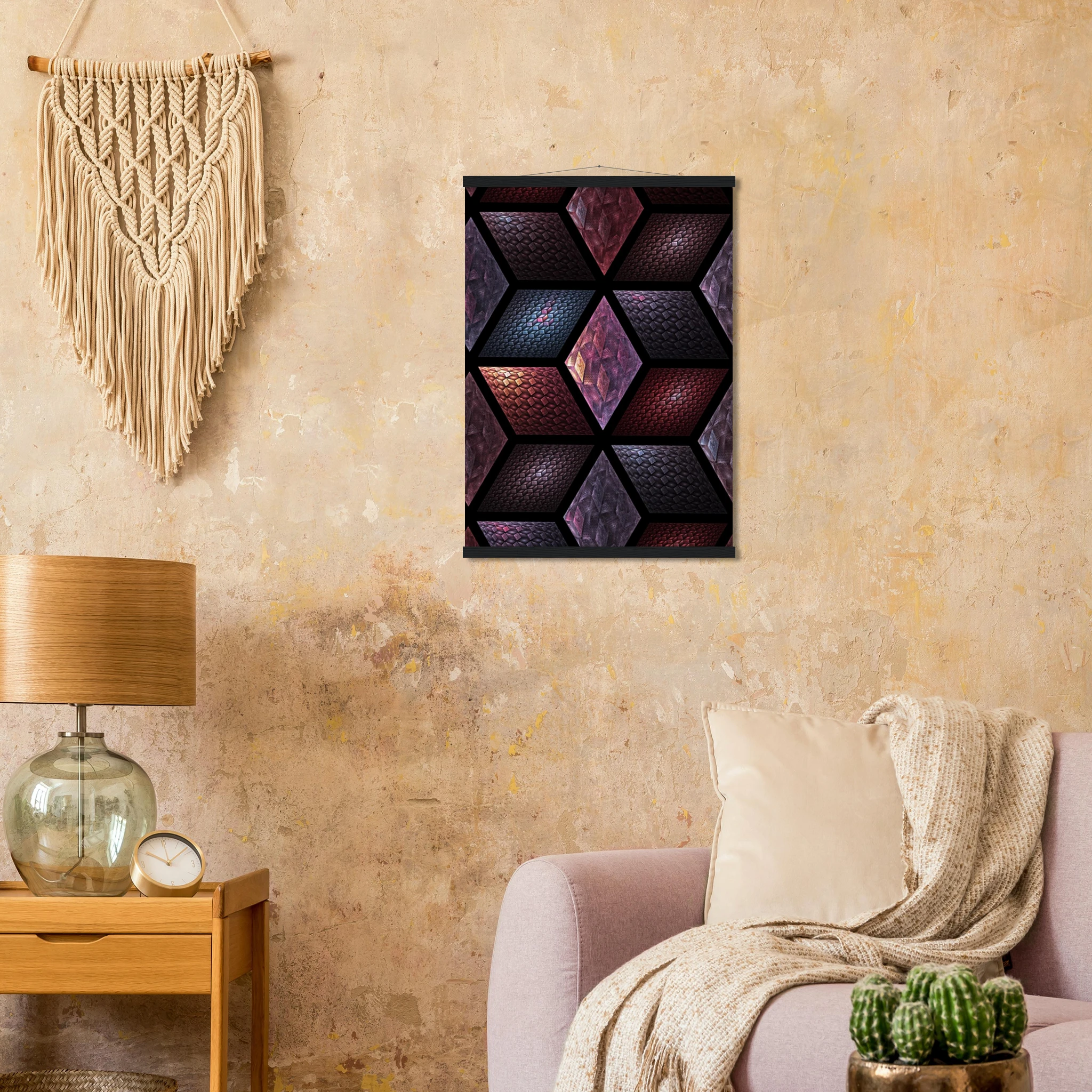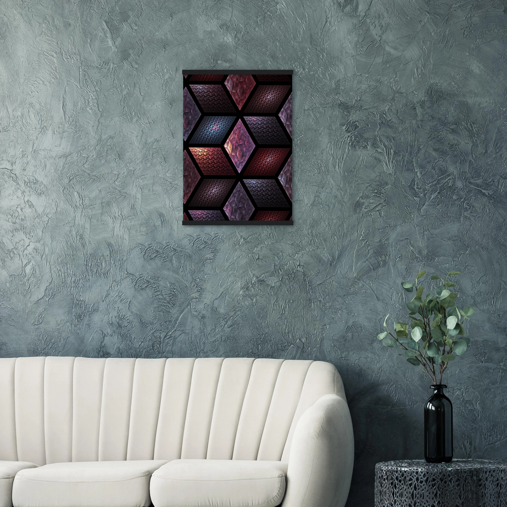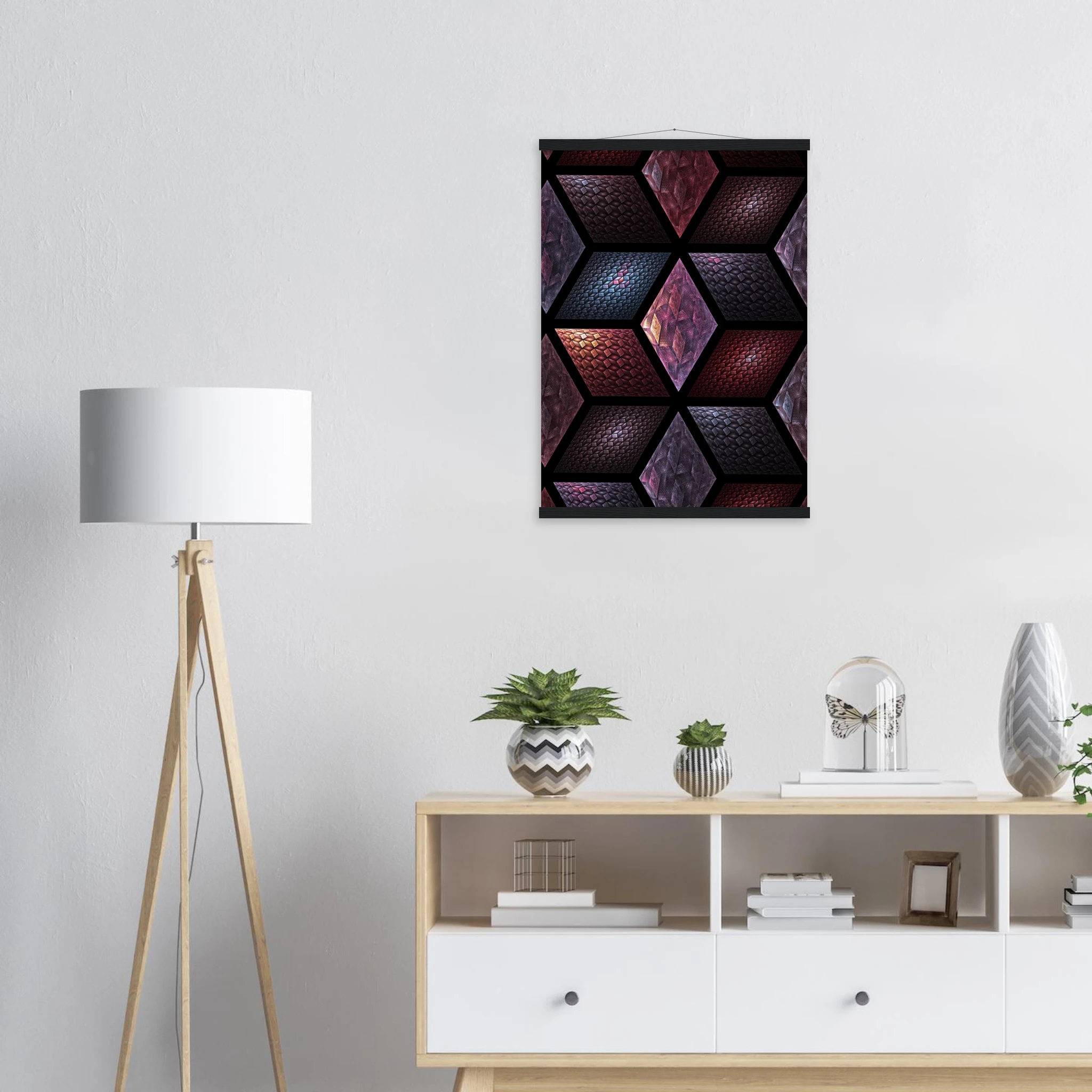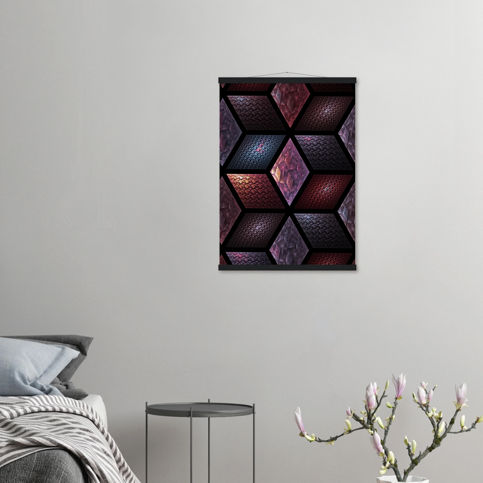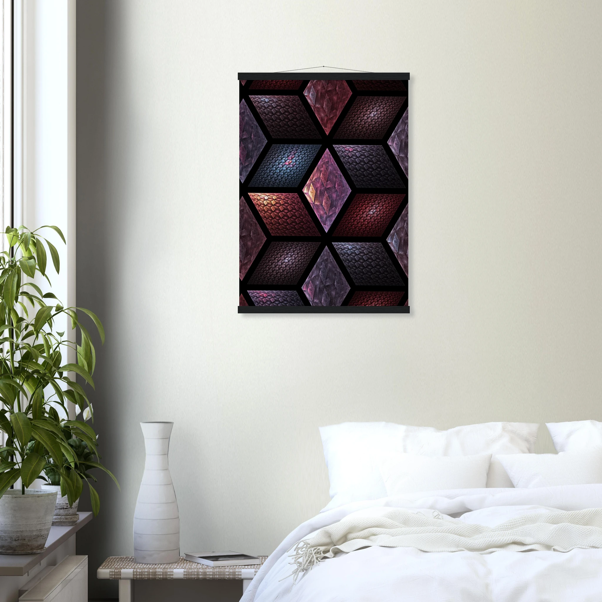 Get Cubes as an 8″ x 12″ print with a black wood magentic hanger that allows for versatile display in your home or office. This piece is produced on semi-glossy paper that enhances colors with a subtle shine.